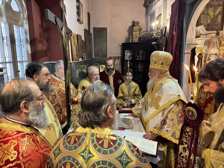 Ομοίως, με παλαιούς γνώριμούς ιερείς του ιερού ναού, αλλά και τον εκ Βόλου καταγόμενο Ιεροκήρυκα και εκπαιδευτικό της Ιεράς Μητροπόλεως Κερκύρας, Αρχιμανδρίτη Δοσίθεο Παπαμήτρο. Επίσης, στον ως άνω Ιερό Ναό παρευρέθησαν παλαιά πνευματικά του παιδιά, αλλά και συνεργάτες ως και οι παλαιοί συμμαθητές του και άλλοι γνώριμοι, οι οποίοι έσπευσαν να λειτουργηθούν και να έχουν πνευματική επικοινωνία με το Σεβασμιώτατο.