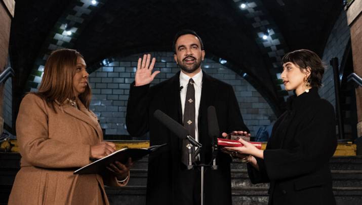 Την 1η Ιανουαρίου 2026, ο 34χρονος Δημοκρατικός Ζόχραν Μαμντάνι ανέλαβε τα καθήκοντά του ως δήμαρχος της Νέας Υόρκης, καθιστάμενος ο πρώτος μουσουλμάνος, ο πρώτος εκπρόσωπος της Νότιας Ασίας και ο πρώτος γεννημένος στην Αφρική που κατέλαβε τη θέση αυτή. Η τελετή πραγματοποιήθηκε λίγο μετά τα μεσάνυχτα σε κλειστό σταθμό του μετρό κάτω από το κτήριο του Δημαρχείου.