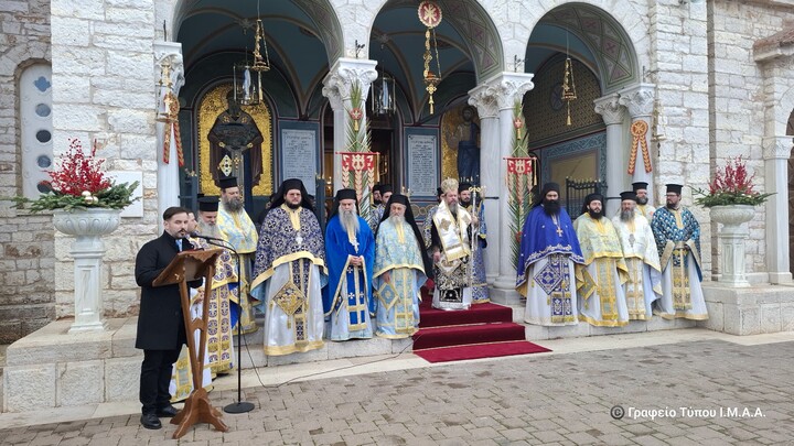 Κατά τη διάρκεια του Κοινωνικού, αναγνώσθηκε το μήνυμα του Σεβασμιωτάτου για την έναρξη του επετειακού έτους, το οποίο διαβάσθηκε ταυτόχρονα σε όλους τους Ιερούς Ναούς και τις Μονές της τοπικής Εκκλησίας. Ακολούθησε πανηγυρική Δοξολογία, κατά την οποία εψάλησαν ειδικά τροπάρια της Εξόδου και αναγνώσθηκε ευχή για τη συμπλήρωση των διακοσίων ετών, υμνογραφημένη από τον Ιερομόναχο Αθανάσιο Σιμωνοπετρίτη.