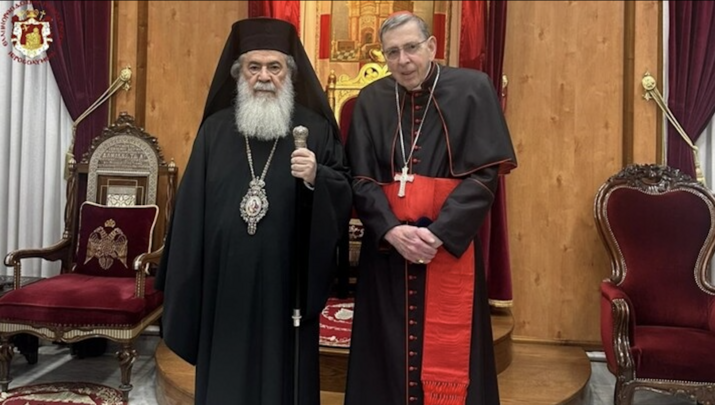 Συνάντηση του Πατριάρχου Ιεροσολύμων με τον Καρδινάλιο Κώχ για τον θεολογικό διάλογο και τη χριστιανική ενότητα.