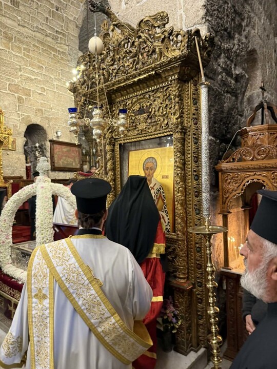Το πρωί του Σαββάτου, της Θείας Λειτουργίας προέστη ο οικείος Ποιμενάρχης, Μητροπολίτης Κιτίου κ. Νεκτάριος, συλλειτουργούντων των Μητροπολιτών Κυρηνείας κ. Χρυσοστόμου και του Επισκόπου Μεσαορίας κ. Γρηγορίου.