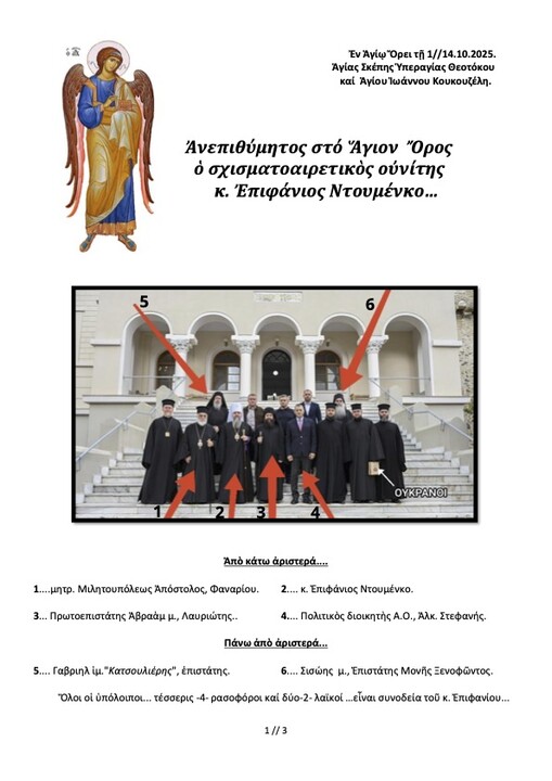 Ἡ πλειοψηφία τῶν Ἁγιορείτικων Ἱερῶν Μονῶν ποὺ δὲν συλλειτούργησαν μὲ τὸν σχισματοαιρετικὸν οὐνίτη κ.Ἐπιφάνιο Ντουμένκο ὀφείλουν καθηκόντως νὰ θέσουν σὲ ἀκοινωνησία ὅλους τοὺς Ἁγιορεῖτες καθηγουμένους καὶ ἱερομονάχους ποὺ συμμετεῖχαν...