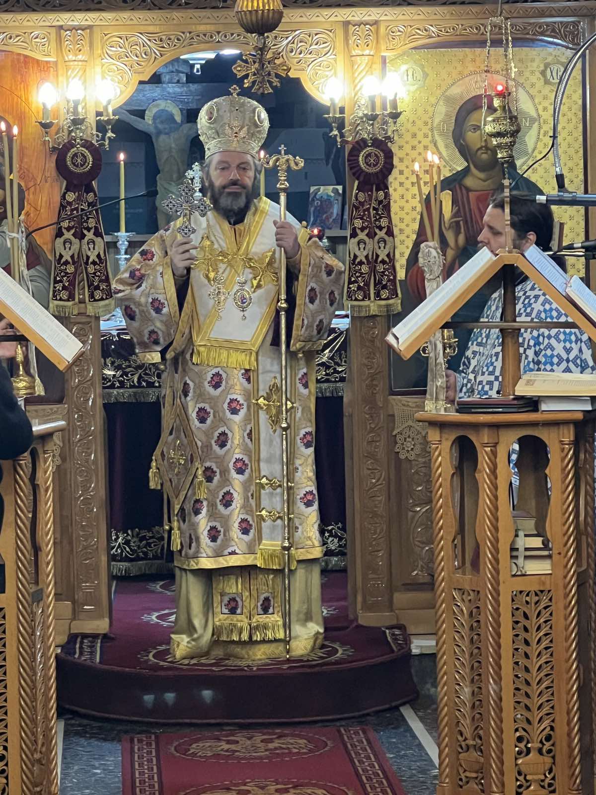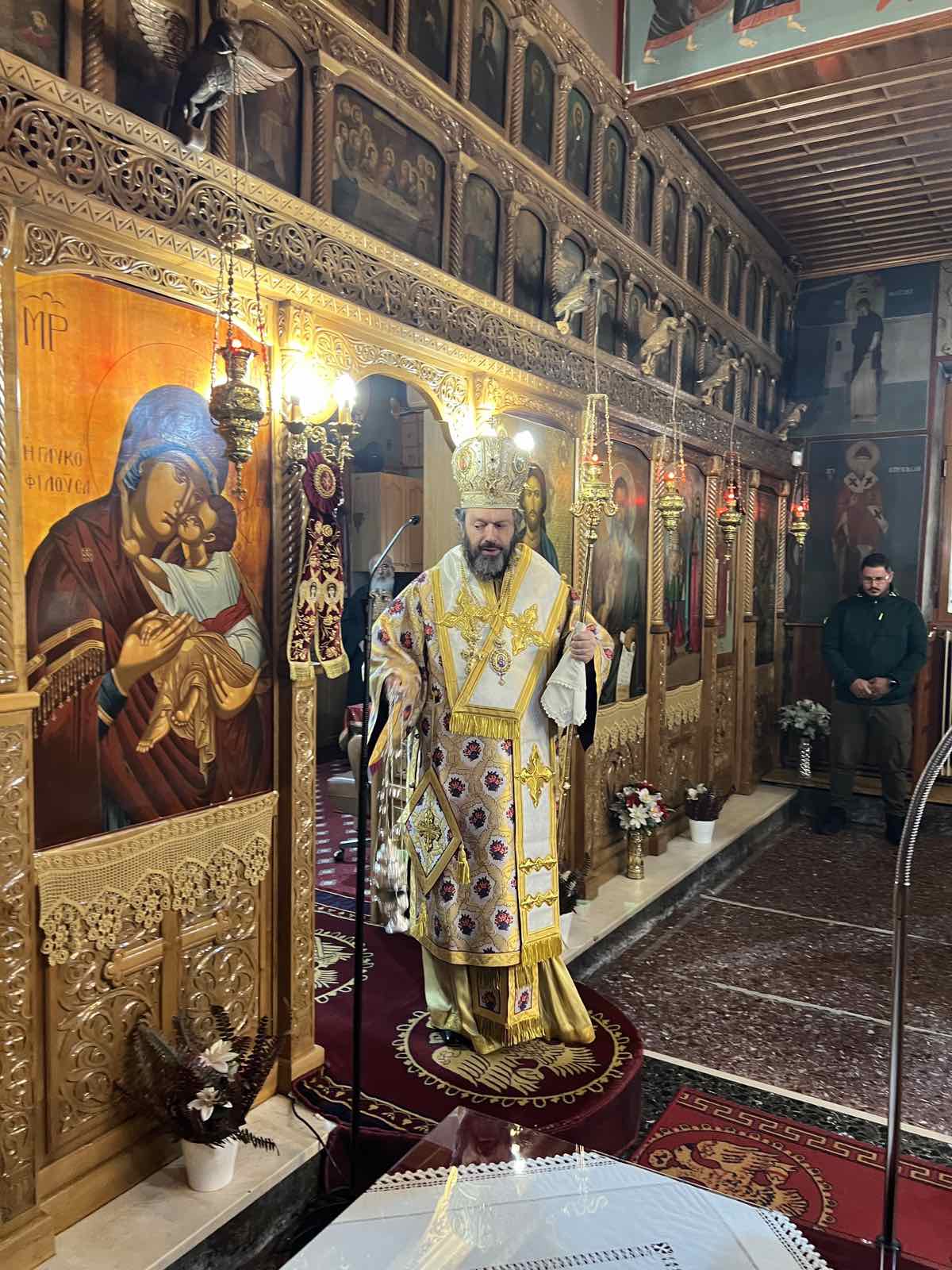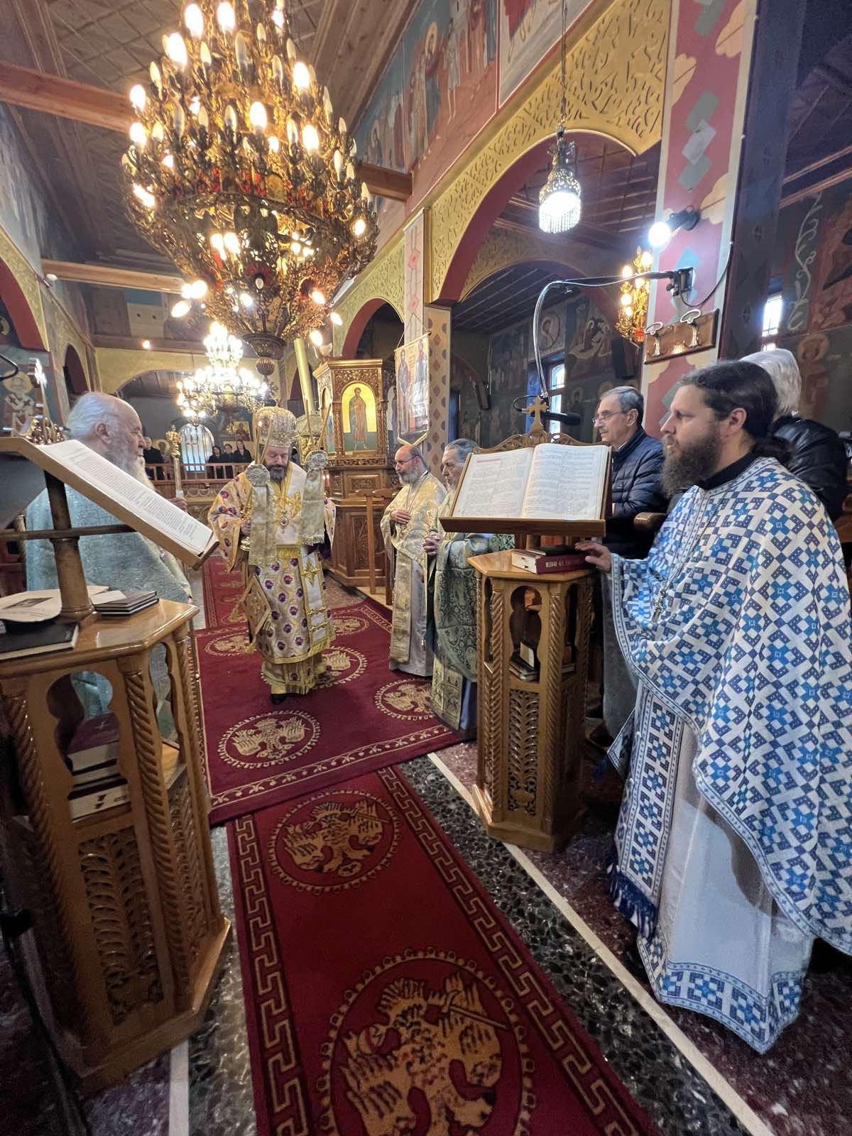 Ο Σεβασμιώτατος έτυχε θερμής και συγκινητικής υποδοχής. Χοροστάτησε στον Κυριακάτικο Όρθρο και προέστη της Αρχιερατικής Θείας Λειτουργίας, συμπαραστατούμενος από τον Γενικό Αρχιερατικό Επίτροπο, Πανοσιολ. Αρχιμ. Νικόλαο Λιόλιο, τον Ιεροκήρυκα της Μητροπόλεως, Πανοσιολ. Αρχιμ. Χερουβείμ Σουτόπουλο, τον Πανοσιολ. Αρχιμ. Ισαάκ Μέμο, τον εφημέριο Παρακαλάμου πρωτοπρ. Διονύσιο Τάτση, τον πρωτοπρ. Νικόλαο Μέμο, τον οικονόμο Μιχαήλ Μπράχο, και συμπροσευχόμενο τον πολιό π. Αδαμάντιο Διαμάντη.
