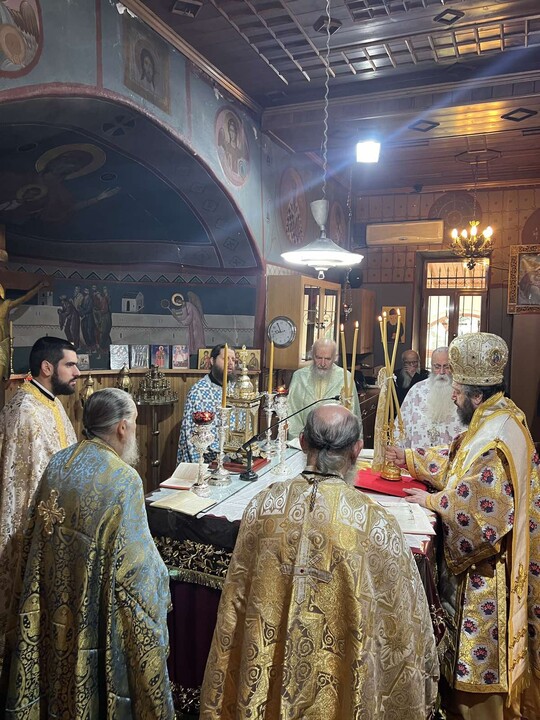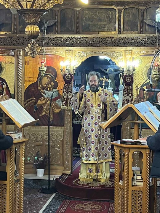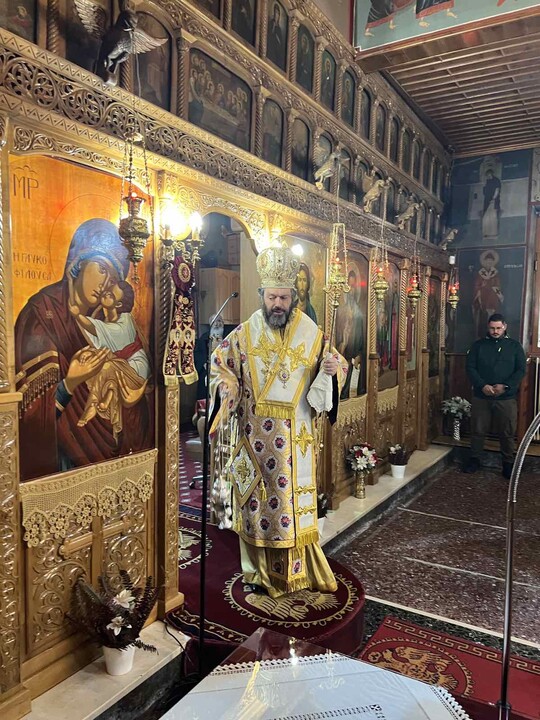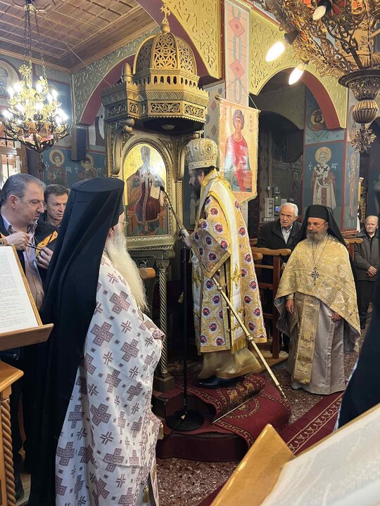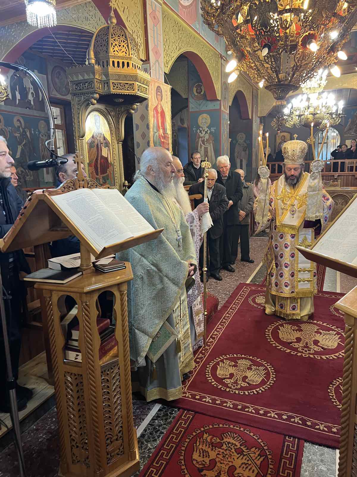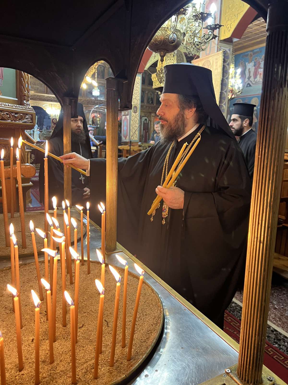 Ο Σεβασμιώτατος έτυχε θερμής και συγκινητικής υποδοχής. Χοροστάτησε στον Κυριακάτικο Όρθρο και προέστη της Αρχιερατικής Θείας Λειτουργίας, συμπαραστατούμενος από τον Γενικό Αρχιερατικό Επίτροπο, Πανοσιολ. Αρχιμ. Νικόλαο Λιόλιο, τον Ιεροκήρυκα της Μητροπόλεως, Πανοσιολ. Αρχιμ. Χερουβείμ Σουτόπουλο, τον Πανοσιολ. Αρχιμ. Ισαάκ Μέμο, τον εφημέριο Παρακαλάμου πρωτοπρ. Διονύσιο Τάτση, τον πρωτοπρ. Νικόλαο Μέμο, τον οικονόμο Μιχαήλ Μπράχο, και συμπροσευχόμενο τον πολιό π. Αδαμάντιο Διαμάντη.