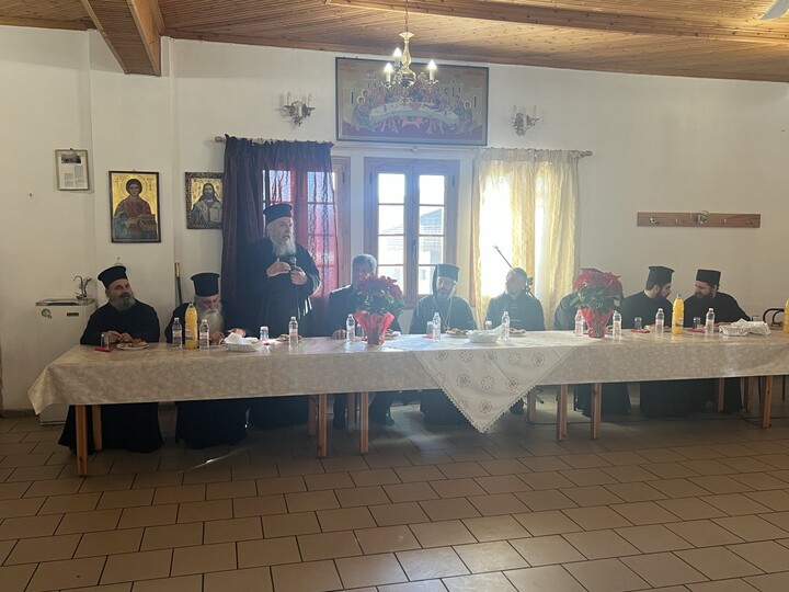 Η Ενορία προσέφερε καφέ και κεράσματα στην ανακαινισμένη αίθουσα του Ναού, όπου ο Σεβασμιώτατος είχε την ευκαιρία να συνομιλήσει με τους κατοίκους, να γνωρίσει τα πρόσωπα, τις ανησυχίες και την καθημερινότητά τους. Ο π. Διονύσιος παρουσίασε στον Ποιμενάρχη το έργο της Ενορίας και τα πολλά παρεκκλήσια και μοναστήρια της περιοχής, δείχνοντας τον πνευματικό πλούτο που διαθέτει ο Παρακάλαμος.
