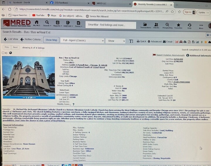 Η πώληση πραγματοποιήθηκε στις 20 Οκτωβρίου 2025. Ο ναός, που βρίσκεται στη διεύθυνση 12211 S. Parnell Ave, Chicago, IL 60628, άρχισε να κατασκευάζεται πριν από 107 χρόνια. Έτσι, η ουκρανική κοινότητα έχασε ταυτόχρονα ακίνητη περιουσία, γη, καθώς και πνευματική και καλλιτεχνική αξία.
