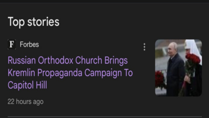 Αρχικά, το άρθρο του Forbes δημοσιεύθηκε με τίτλο «Η Ρωσική Ορθόδοξη Εκκλησία έφερε την προπαγάνδα του Κρεμλίνου στο Κογκρέσο των ΗΠΑ». Μετά από επιστολή της Εταιρείας του Αγίου Ιωάννη της Σαγκάης και του Σαν Φρανσίσκο, που δήλωσε για ψευδείς πληροφορίες, ο τίτλος άλλαξε, αλλά το υλικό παρέμεινε με παραμορφώσεις. Μετά από δεύτερη επιστολή των χριστιανών, η δημοσίευση αφαιρέθηκε πλήρως.