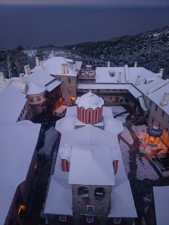 Αξίζει δε να σημειωθεί ότι κατά τη διάρκεια της νύκτας, εξωτερικά, την Ι. Μ. την εκάλυψε παχύ στρώμα χιονιού, εσωτερικά δε εις το καθολικόν, η πνευματική θερμοκρασία ανέβηκε υψηλά με τα αγιορείτικα ακούσματα από τον Νεοσκητιώτη Γέροντα Δαμασκηνό και τη συνοδεία του. Οι μελίρρυτες φωνές παρακινούσαν τους μοναχούς και τους πολυπληθείς προσκυνητές σε ανάταση ψυχική.