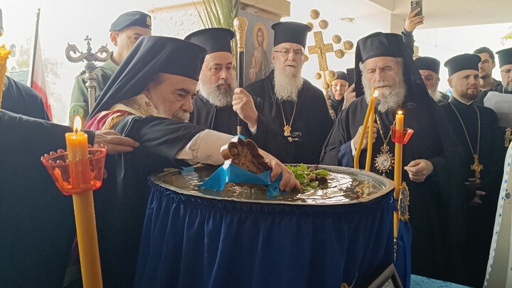 «Τέλος, η Αυτού Μακαριότης, παρά το πολυπληθές πλήθος, κατέβη στην όχθη του ποταμού Ιορδάνη και βύθισε στα νερά τον πολύτιμο Σταυρό, αγιασμένο από το Σώμα του Κυρίου ημών Ιησού Χριστού, υπό την ψαλμωδία: "Εν Ιορδάνη βαπτιζομένου Σου, Κύριε"», αναφέρεται στην ανακοίνωση.