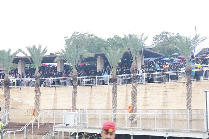 Στην ανατολική όχθη, απέναντι από τον τόπο της θείας λειτουργίας, ο αρχιεπίσκοπος Χριστόφορος Κυριακουπόλεως τέλεσε ανάλογη ακολουθία με προσκυνητές από την Ιορδανία.