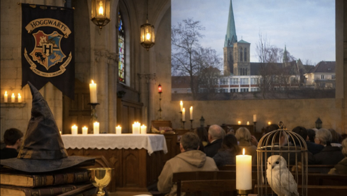 Πρόκειται για λειτουργία που έχει προγραμματιστεί για τις 28 Φεβρουαρίου στην εκκλησία της Ιεράς Καρδιάς στο Χέρνε. Οι διοργανωτές την παρουσιάζουν ως συνάντηση για «φανατικούς και αρχάριους του Χόγκουαρτς» – μια βραδιά «ανάμεσα σε κεριά, φως και σκοτάδι», αφιερωμένη στο θέμα της ελπίδας. Στους συμμετέχοντες προτείνεται να έρθουν με κοστούμια, ενώ η ίδια η μορφή παρουσιάζεται ως ιεραποστολική και οικουμενική.