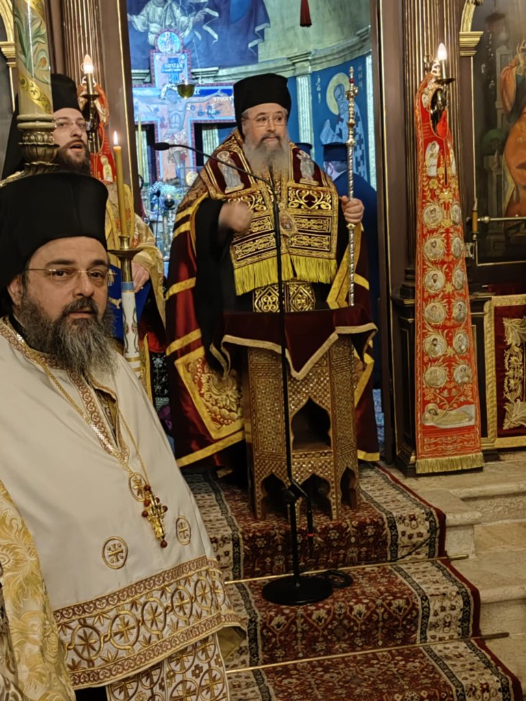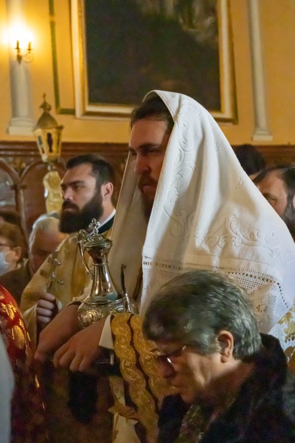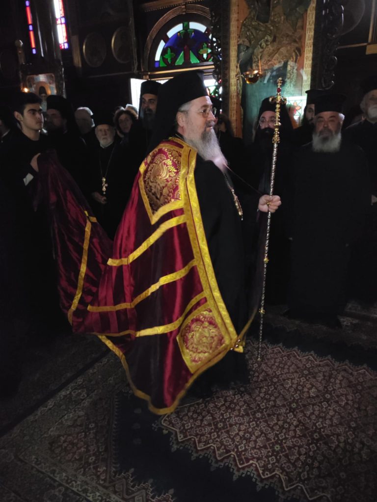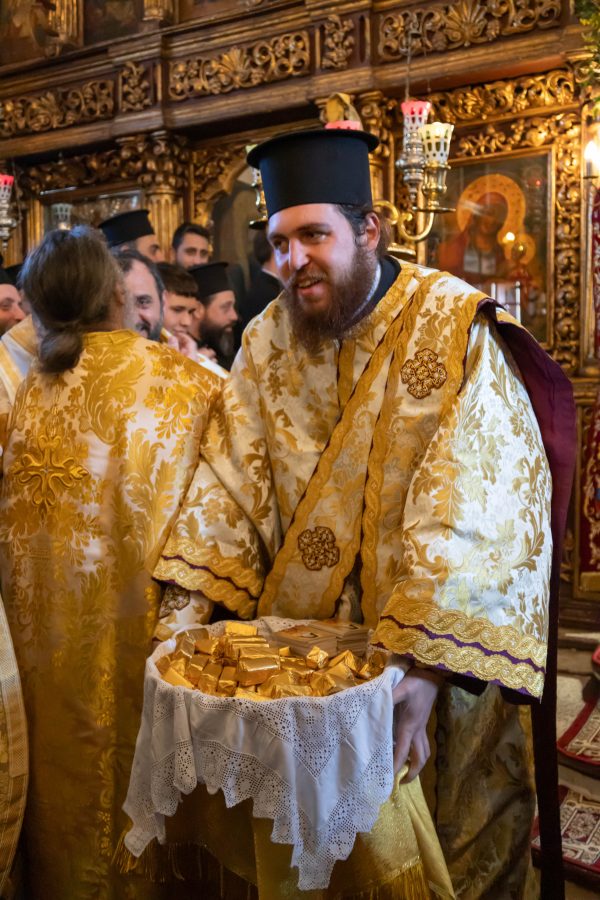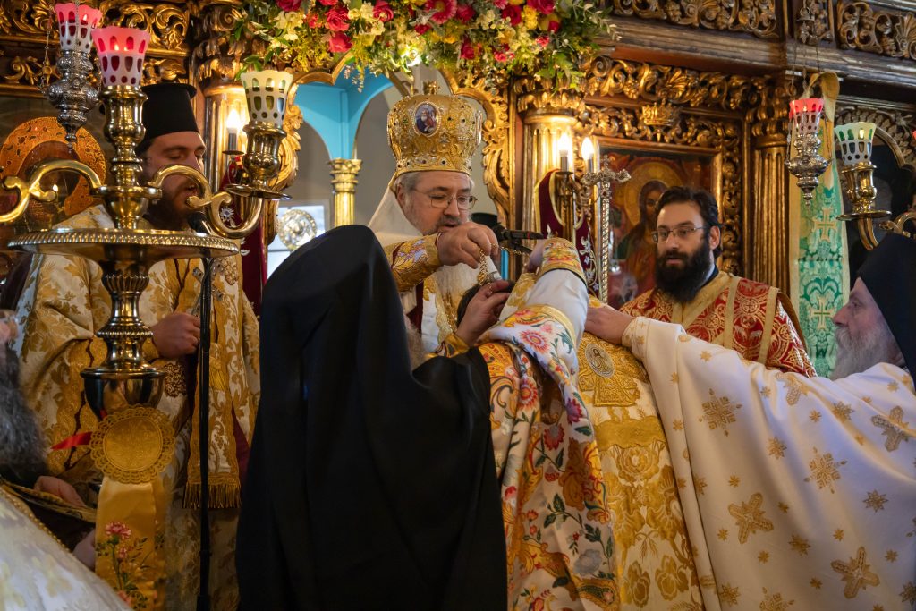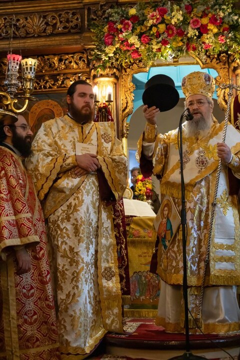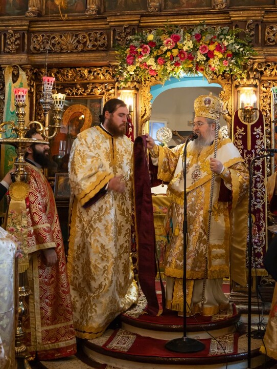Πριν το πέρας της Θείας Λειτουργίας ο Σεβασμιώτατος απένειμε το οφφίκιο του Πρωτοπρεσβυτέρου στον προιστάμενο του Ιερού Ναού π. Γρηγόριο Τσαβαλά τιμώντας έτσι το έργο που επιτελεί στην ενορία.