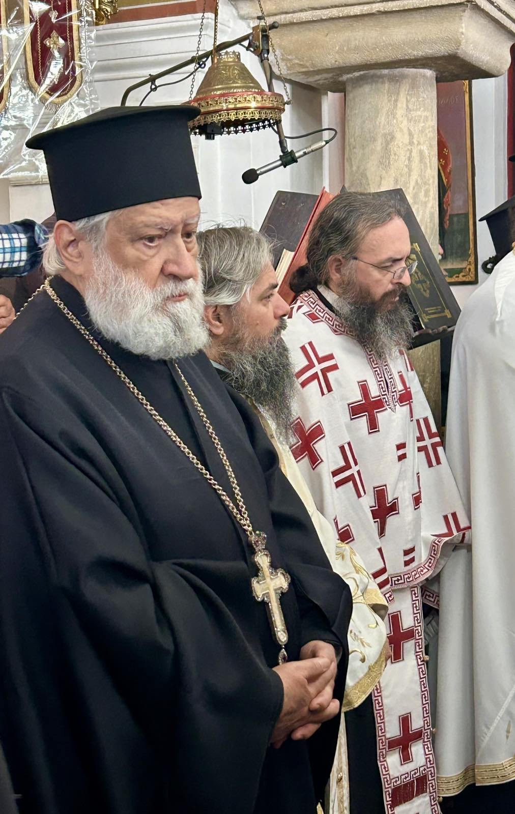 Ο Αιδεσιμολογιώτατος Πρωτοπρεσβύτερος του Οικουμενικού Θρόνου κ. Νικόλαος Σιγάλας, Γενικός Αρχιερατικός Επίτροπος της Ιεράς Μητροπόλεως Θήρας, ως εκπρόσωπος της Α. Θ. Μ. του Πάπα και Πατριάρχου Αλεξανδρείας κ. Θεοδώρου Β’ εκφώνησε συλλυπητήριο λόγο Αυτού.
