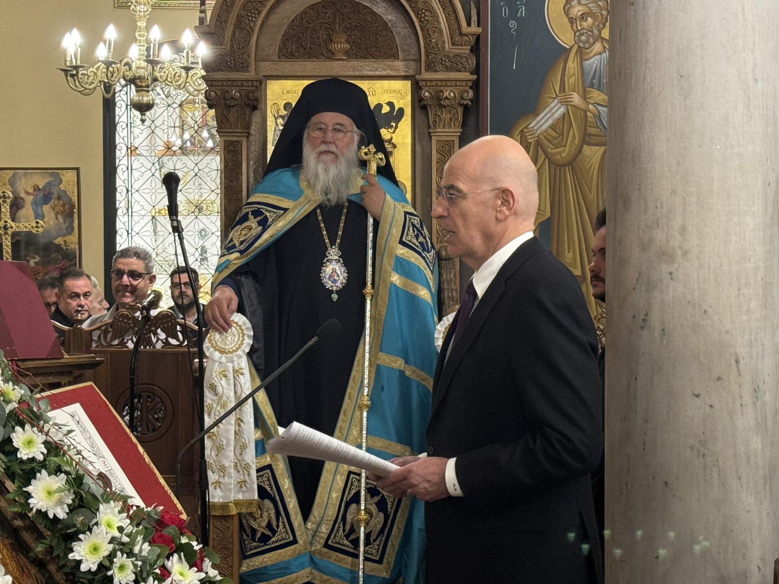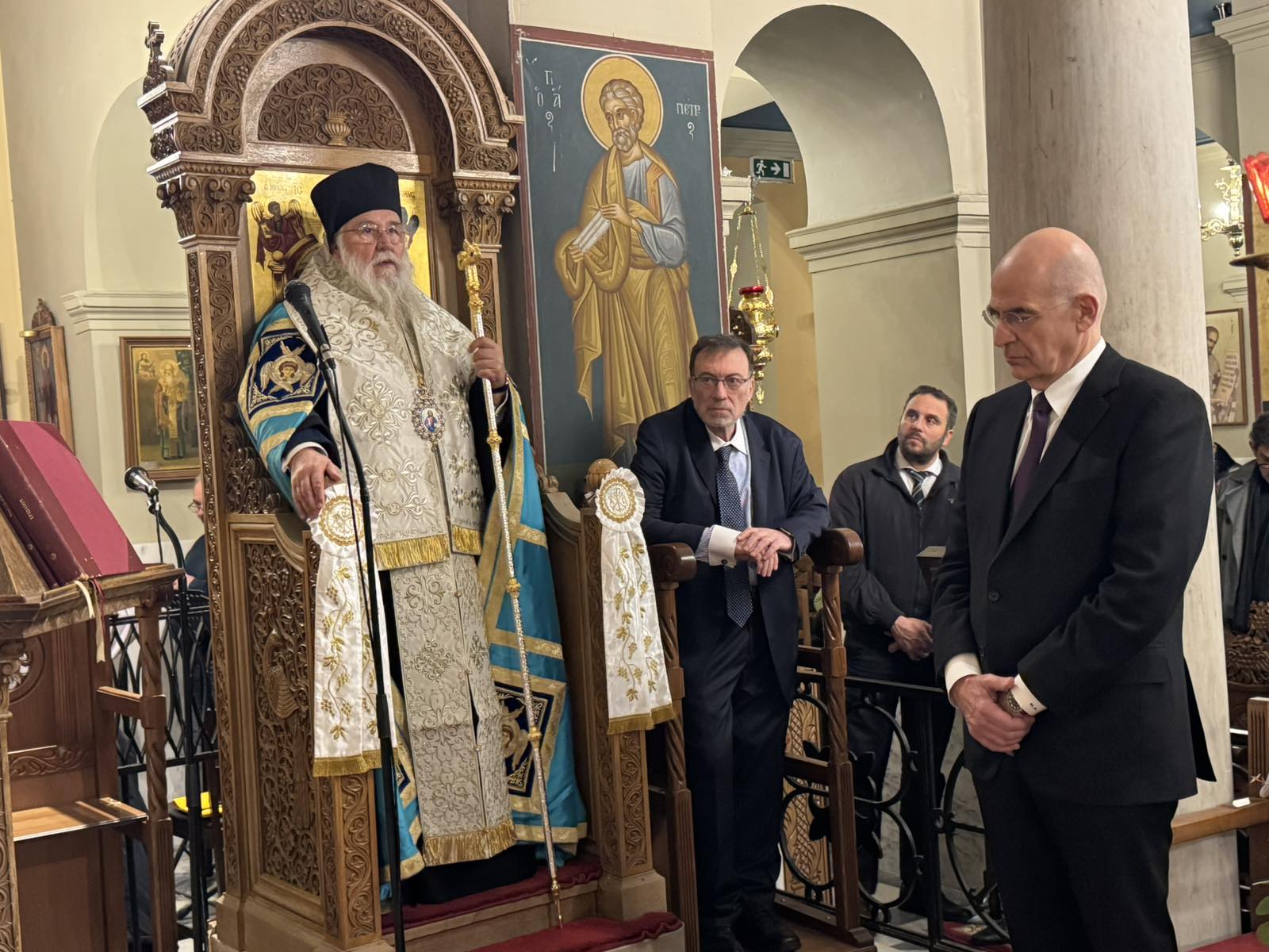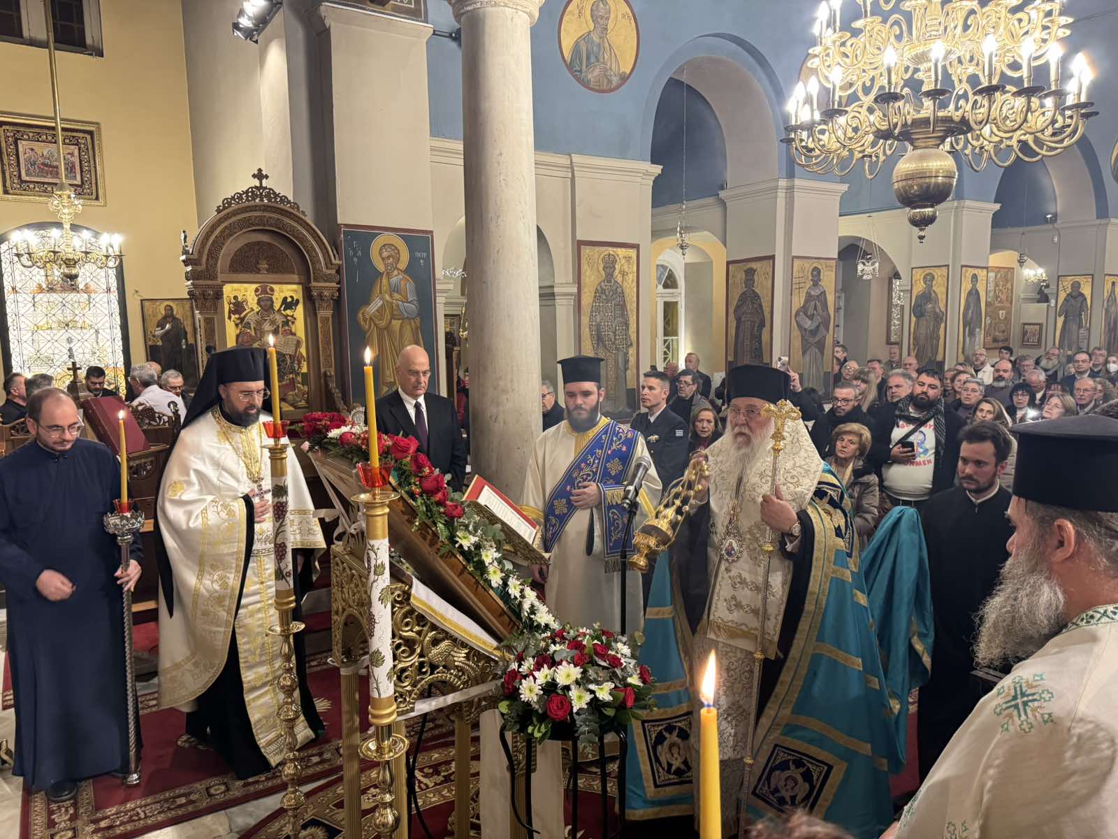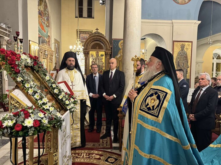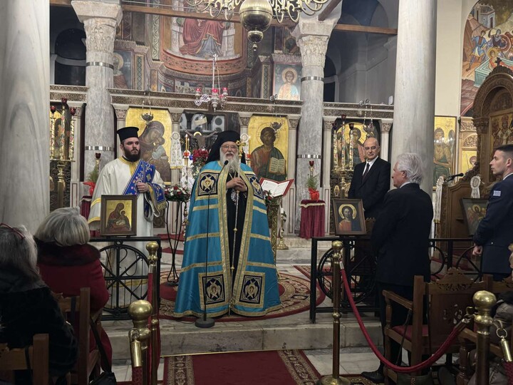 Αρχικά, ο Σεβασμιώτατος εξέφρασε τη χαρά και τη συγκίνησή του για την ευκαιρία που του δόθηκε να επικοινωνήσει και να συναντηθεί σε αυτήν τη λατρευτική σύναξη με τους Κερκυραίους της Πρωτεύουσας. Παράλληλα, εξέφρασε την ιδιαίτερη χαρά του για τη συνάντησή του με τον Υπουργό Εθνικής Άμυνας τον οποίο καλωσόρισε με εγκάρδιους λόγους.