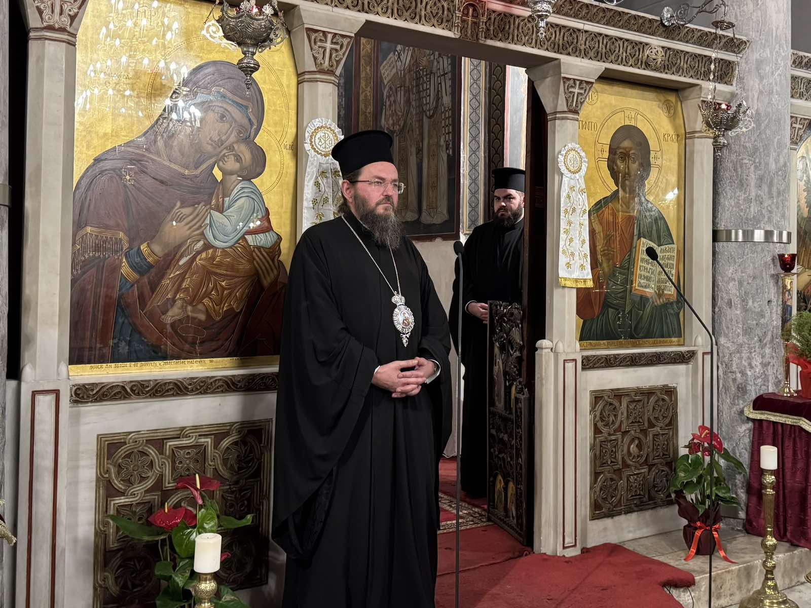 Και τούτο το μυστήριο, υπογράμμισε, πραγματοποιείται διά της Παναγίας μας, η οποία «δανείζει» την ανθρώπινη φύση στον Λόγο. Η σύλληψη γίνεται άνευ ανδρός, καθώς ο Χριστός ήταν «απάτωρ από τους ανθρώπους» και η Θεοτόκος, ενώ ακούει την προαιώνια βουλή που κομίζει ο ασώματος Αρχάγγελος, γίνεται «μύστης της γνώσεως του υπερτάτου μυστηρίου», δεχόμενη εσωτερικά τη θεία παρουσία η οποία τη μεταμόρφωσε. Έτσι, η Παναγία μας βίωσε τη θεογνωσία.