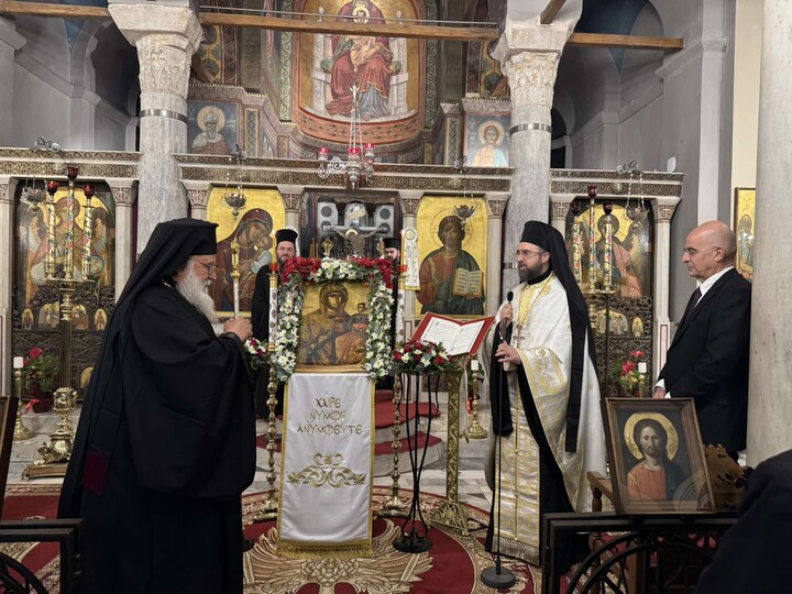 Την Παρασκευή 27 Φεβρουαρίου 2026, ο Σεβασμιώτατος Μητροπολίτης Κερκύρας, Παξών και Διαποντίων Νήσων, κ. Νεκτάριος, βρέθηκε στην Αθήνα με αφορμή τη συμμετοχή του στη Συνοδική Θεία Λειτουργία την Κυριακή της Ορθοδοξίας. Έτσι, κατόπιν αδείας του Μακαριωτάτου Αρχιεπισκόπου Αθηνών και πάσης Ελλάδος, κ. Ιερωνύμου, μετέβη στον Ιερό Ναό Μεταμορφώσεως του Σωτήρος Πλάκας, στο κέντρο των Αθηνών, όπου χοροστάτησε κατά την Ακολουθία των Α΄ Χαιρετισμών της Υπεραγίας Θεοτόκου.