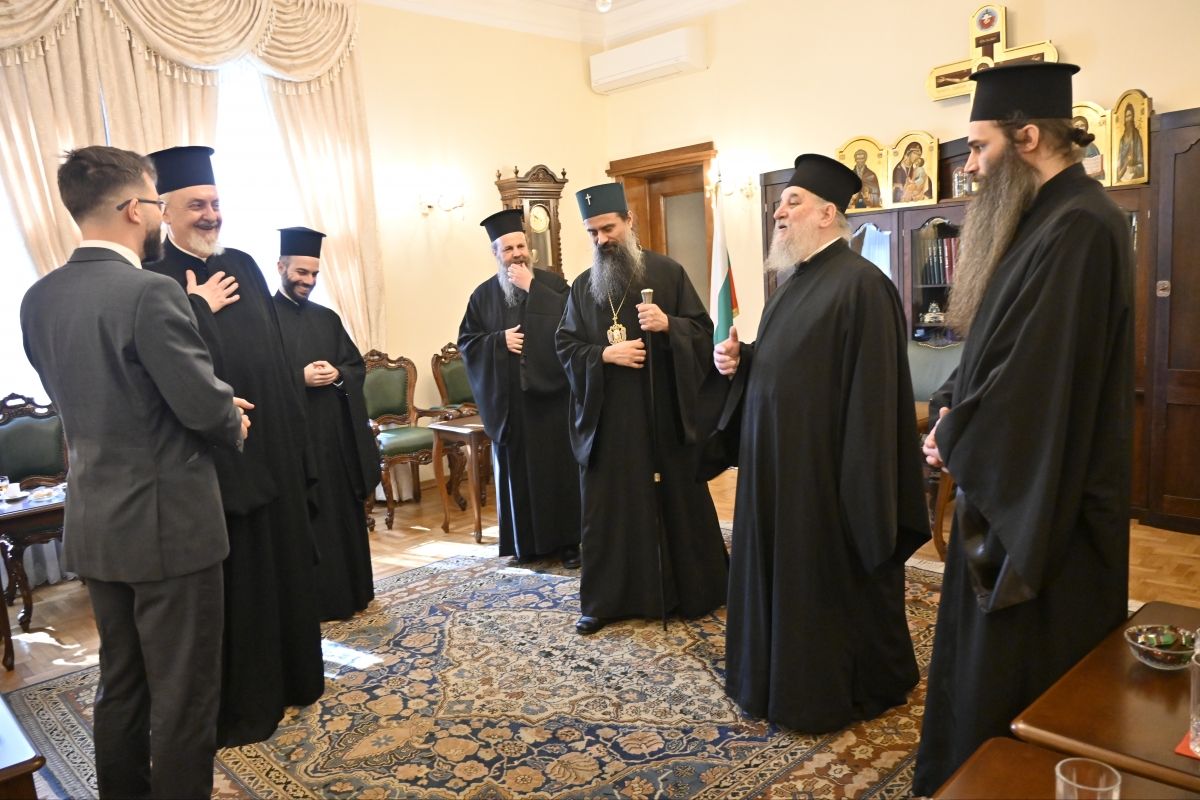 Σήμερα, 12 Μαρτίου 2026, ο Μακαριώτατος Πατριάρχης Βουλγαρίας κ.κ. Δανιήλ δέχθηκε στο κτίριο της Ιεράς Μητροπόλεως Σόφιας αντιπροσωπεία του Οικουμενικού Πατριαρχείου, αποτελούμενη από τους Σεβασμιώτατους Μητροπολίτες Γέροντα Χαλκηδόνος κ. Εμμανουήλ, Ίμβρου και Τενέδου κ. Κύριλλο και τον Πανοσιολογιώτατο Αρχιμανδρίτη Αέτιο, Μέγα Εκκλησιάρχη και Διευθυντή του Ιδιαίτερου Πατριαρχικού Γραφείου.