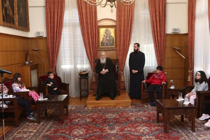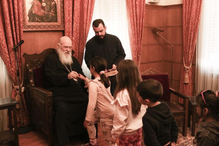 Μαθητές από το νηπιαγωγείο των Λειψών επισκέφθηκαν την Ιερά Αρχιεπισκοπή Αθηνώνκαι συναντήθηκαν με τον Αρχιεπίσκοπο Ιερώνυμο.